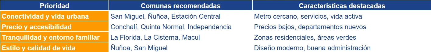 Tip Level: define tus prioridades antes de buscar, si prefieres cercanía al trabajo, vida de barrio o tranquilidad familiar, cada comuna ofrece una combinación distinta.