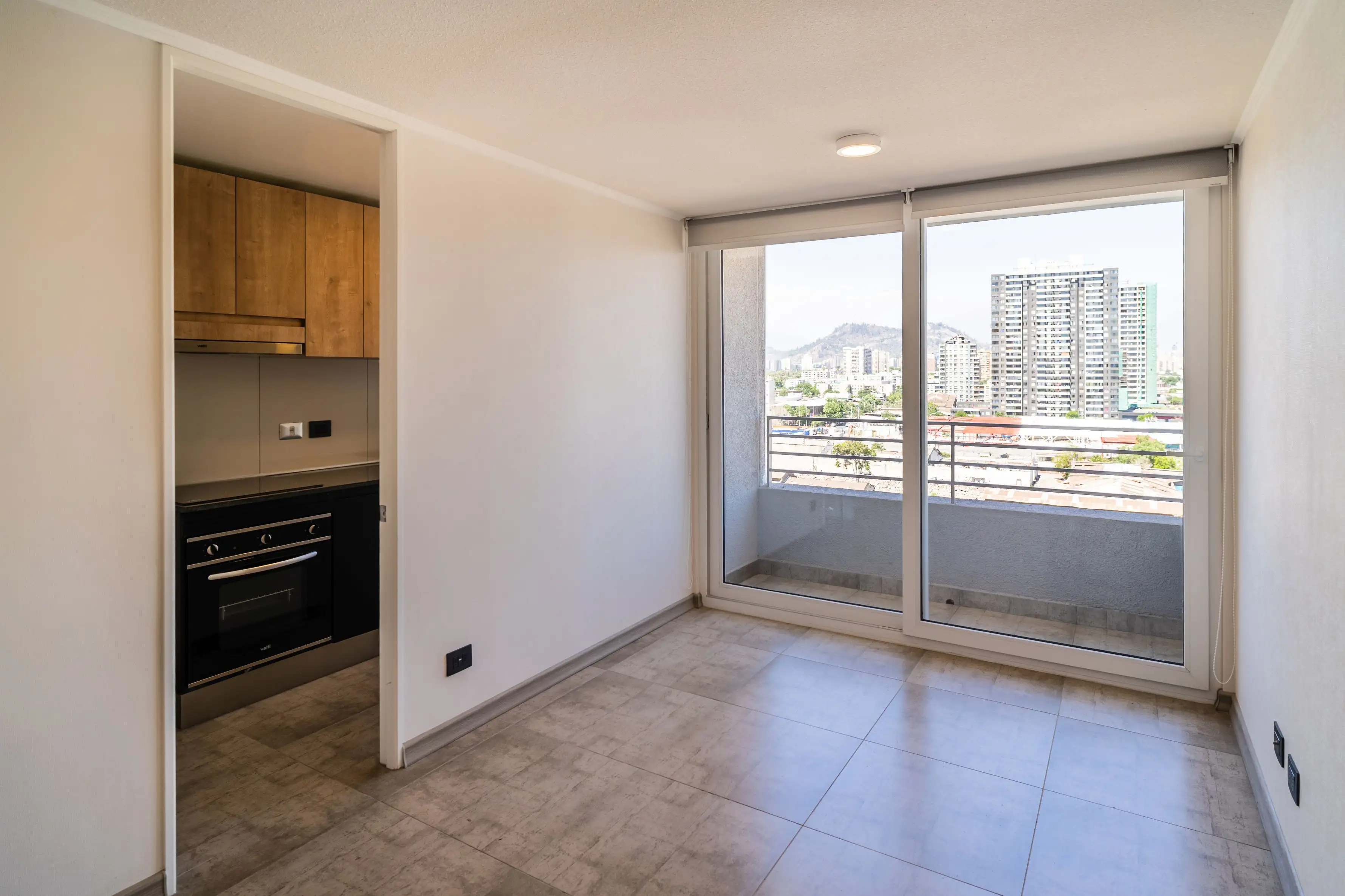 Cocina equipada con campana, horno eléctrico y encimera vitrocerámica.